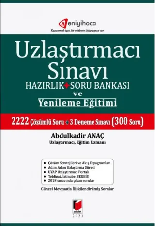 Bu kitabı dikkatlice çalıştığınızda testlerini çözdüğünüz her konuyu çok iyi bir şekilde öğrendiğinizi fark edeceksiniz. Ezbere dayalı bir öğrenme yerine, uzlaştırmacılık müessesesinde verilen kararların nedenleri ve mantığının neler olduğu, çözüm stratejisi, tablolar ve mantıksal akış şemalarına yer verilerek anlatılmıştır.
