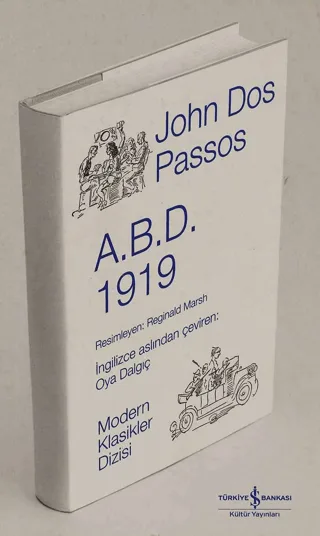 John Dos Passos (1896-1970) New York’lu ünlü ve varlıklı bir avukat olan babasıyla, Virginia’lı seçkin ve soylu bir kadın olan annesi, ancak John on altı yaşına geldiğinde evlenebilirler. Çocukluk yıllarını annesiyle Avrupa’yı dolaşırken arada babasıyla Avrupa otellerinde buluşarak geçirir. Kendi deyimiyle "otel çocuğu"dur. 18 yaşına geldiğinde babası ölür. 1916’da Harvard’ı bitirince okumak için İspanya’ya gider ancak ambulans sürücüsü olarak orduya ve savaşa katılır, cepheleri dolaşır. Savaşı dolaysız olarak tam da içinden yaşar. Three Soldiers (Üç Savaşçı) savaş izlenimlerini yansıttığı ilk romanıdır. Ona göre savaş hayal ürünü bir pazardan yararlanmak uğruna delikanlıların gencecik bedenlerini kurban eden, vahşet ölçüsünde çıldırmış uygarlığın son atağıdır. 25 yaşında genç bir yazar olarak İstanbul’a gelir. Tıpkı çağdaşları ve arkadaşları olan Sinclair Lewis, Ernest Hemingway, F. Scott Fitzgerald gibi o da tüketim hırsına kapılmış ve başka her şeye kayıtsız kalan Amerikan kültürünü acımasızca eleştirir. Kapitalist endüstrinin zorbalığı karşısında duyduğu öfke ve acı, başyapıtı olan A.B.D. üçlemesinde açıkça görülür. Jean Paul Sartre için, "Çağdaş en büyük yazar" Passos’tur. Onun aynı zamanda ölümü o güne kadar en iyi anlatan yazar olduğunu söyleyip şöyle der: "Ölüm üzerine çok şey söylemez, yalnızca ‘Öldü,’ der ama ondan sonra yazdığı her sözcük açık mezara atılan bir kürek topraktır." John Dos Passos üçlemenin ikinci kitabı 1919’da savaşın anlamsızlığını anlatmaya devam eder. Toplumun farklı kesimlerinden insanların kimi zaman birbirleriyle kesişen öyküleri çevresinde savaşa yüklenen anlamları, ardındaki kirli oyunları ve dünya siyasetinin nasıl şekillendiğini tüm çıplaklığıyla gözler önüne serer. Savaş ironik bir biçimde, milyonlarca kişinin hayatları üzerinden yaşamı yeniden şekillendirirken bir yandan da insanlığa ilişkin pek çok şeyi yerle bir eder. Savaş koşullarının yarattığı boşluk içerisinde erozyona uğrayan değer yargıları, aynı zamanda savaşı sürdüren duygusal ortamı da körüklemektedir. Üçlemenin son kitabı Büyük Para’yı da yine Oya Dalgıç’ın eşsiz çevirisiyle yakında sizlerle buluşturacağız. Redinald Marsh (1898-1954) Paris'te doğan ünlü ressam yaşamının büyük bir kısmını New York'ta geçirir. Kalabalık sahil manzaralarını, dönemin partilere katılan tiplerini, sokaklardaki kadınları ve işsiz erkekleri ince bir alayla resmeder. Passos'un dev yapıtı A.B.D. üçlemesinin bu kendine özgü tarzıyla resimlemiştir.